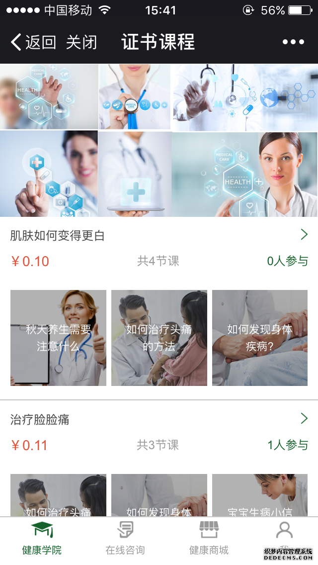 • 课程类别:按课程类别展示课程,课程类别可设置视频课程、音频课程、图文课程、付费课程等多种属性。